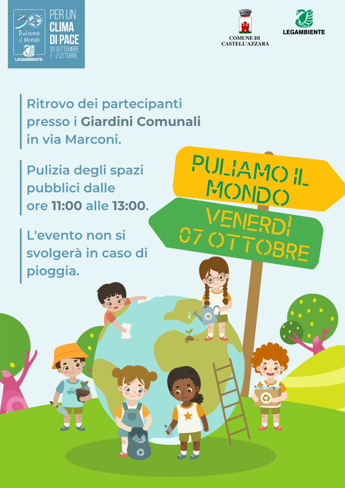 Il Comune di Castell'Azzara, in collaborazione con la scuola, promuove l'iniziativa di Legambiente "Puliamo il Mondo". L’iniziativa rappresenta, per i nostri ragazzi, un’importante occasione nel campo dell’educazione ambientale. Un'esperienza di grande valore educativo che contribuisce a sviluppare senso civico, tutela e valorizzazione del patrimonio ambientale.